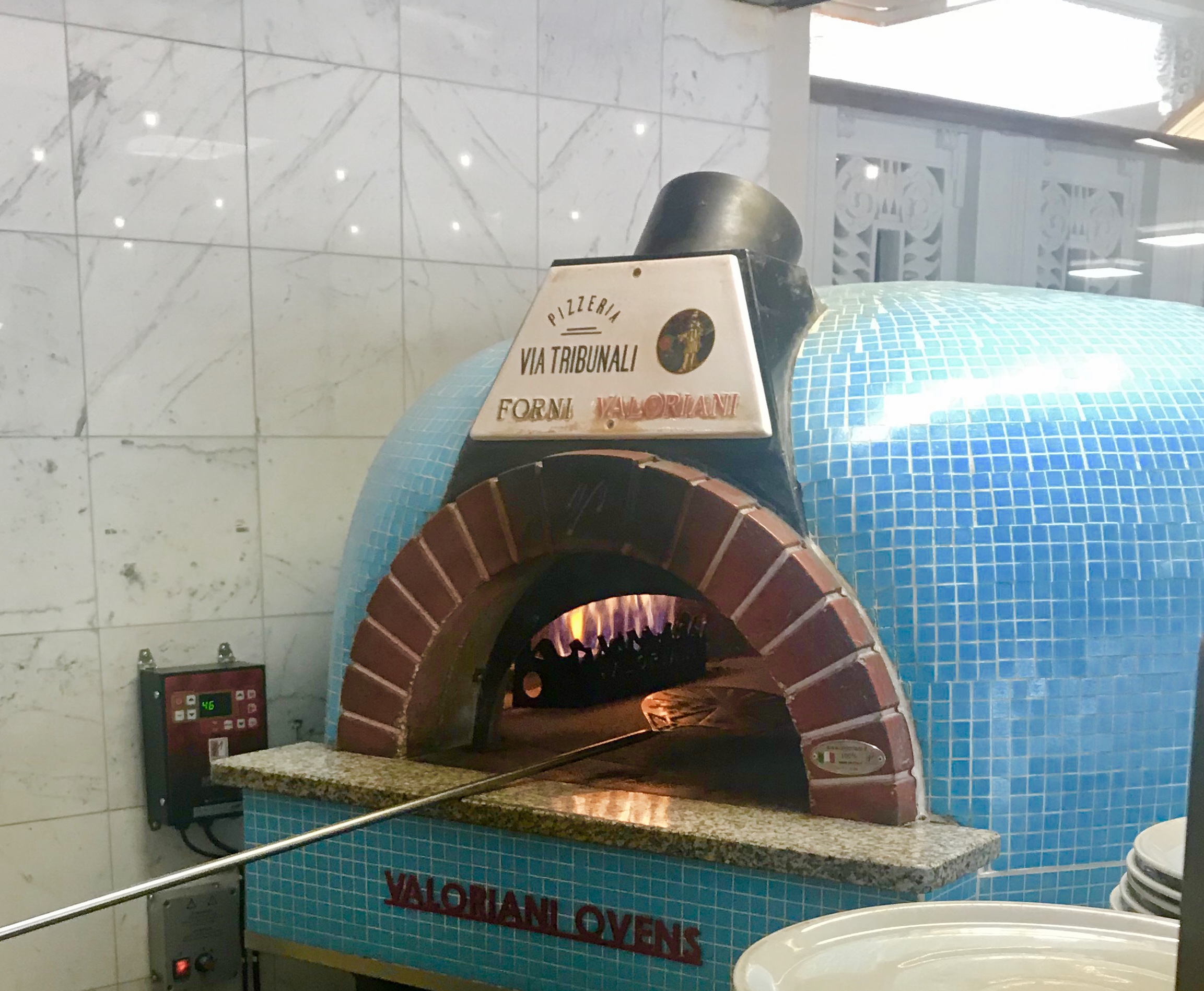 Kun pari tonnia painava pizzauuni tuodaan laivalla Napolista Helsinkiin (ja aiheuttaa ensin ongelmia, kun se ei mahdukaan ravintolan ovesta sisään), ja kun pizzaiolo on saanut koulutuksensa Napolissa, on erittäin hyvät edellytykset saada aitoa, Napolilaista pizzaa. Via Tribunalissa pizzaa paistetaan yksi minuutti 460-470 asteisessa uunissa. Vaikuttavaa.
