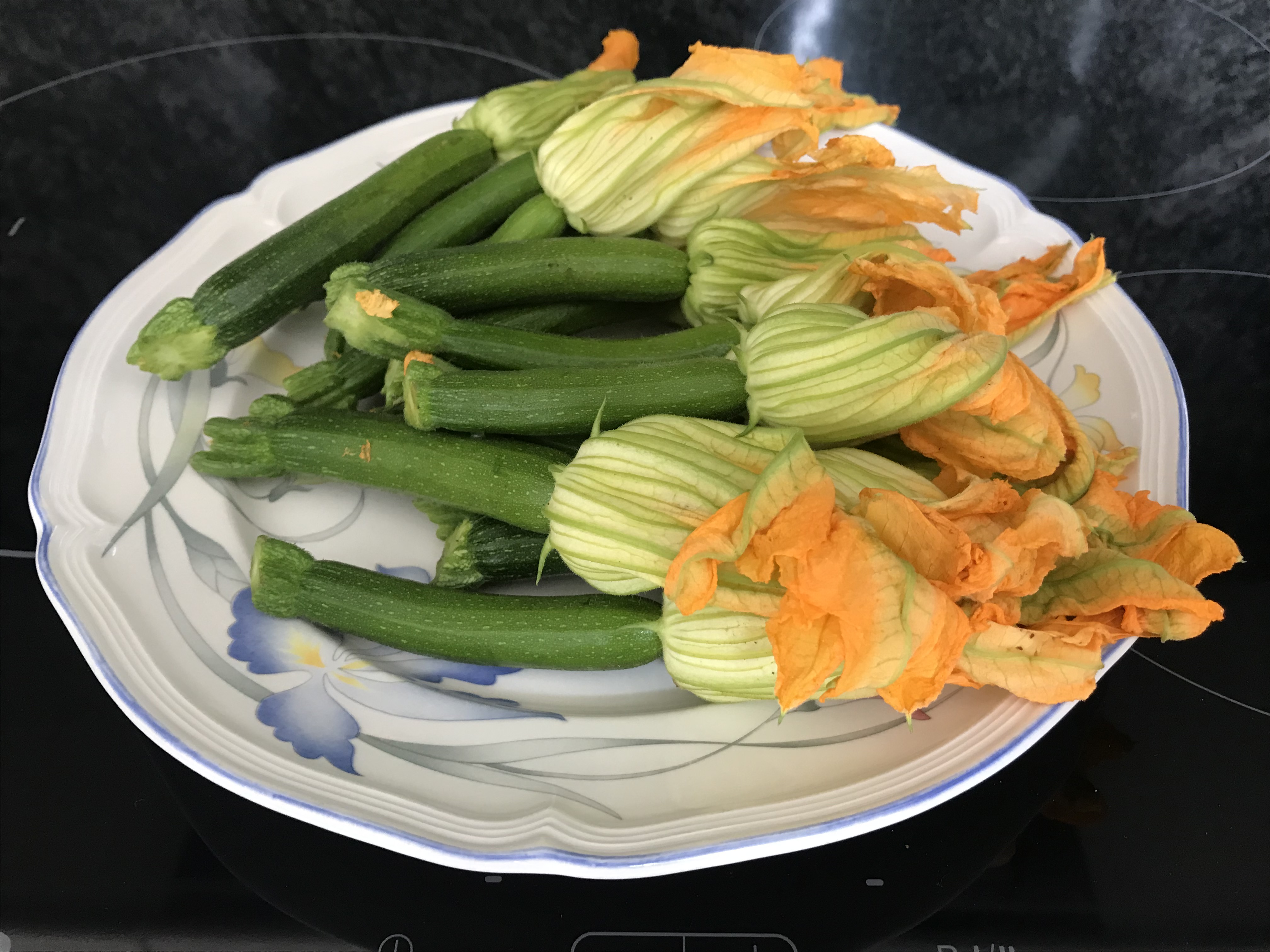 - 12 – 18 kesäkurpitsan kukkaa, lisäksi mahdollisesti kesäkurpitsaa