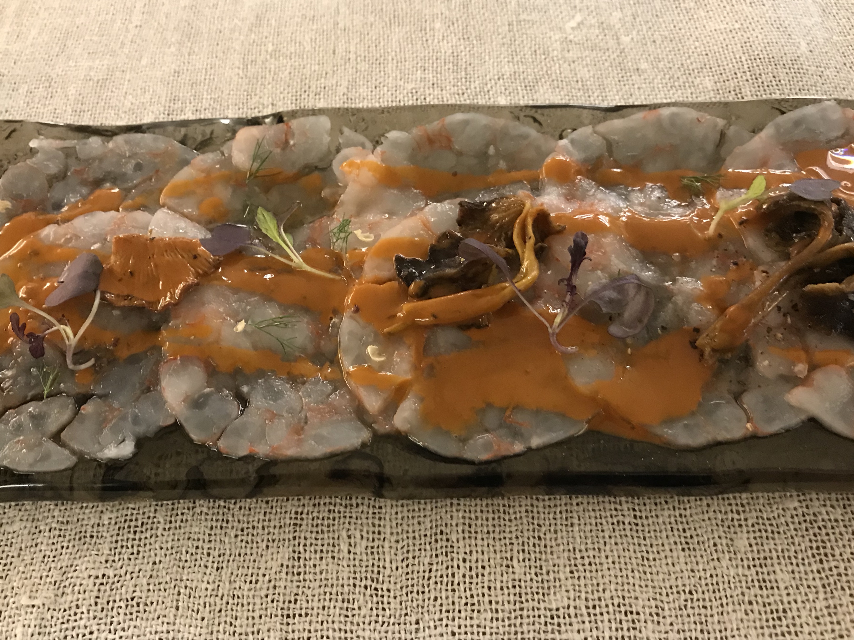 Runsaan vuoden takaisella pistäytymisellä Geronassa ehdimme käydä vain yhdessä kaupungin maineikkaista ravintoloista, nimeltä Maran. Siellä maistoin ensimmäisen kerran kuuluja Palamósin gambaksia eräänlaisena ”tartar”-versiona (Ajoblanco de almendra tostada con gambas de Palamós y vinagre ahumado). Herkullista!