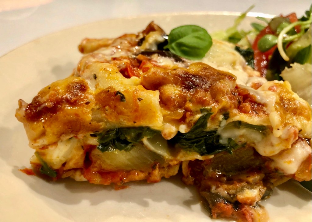 Tämä kasvislasagne kuuluu poikani ja hänen vaimonsa suosikkiruokiin. Ohje on peräisin Kurma dasan kirjasta, Great Vegetarin Dishes. Kurma dasa syntyi Englannissa ja muutti vanhempiensa kanssa Australiaan vuonna 1964. Hän aloitti kokin uransa pilkkomalla vihanneksia, jauhamalla mausteita ja yrttejä sekä avustamalla Hare Krishna -liikkeen sunnuntai-aterian valmistuksessa. Myöhemmin Kurma oli Melbournen tunnetuimman Gopal-nimisen kasvisravintolan keittiöpäällikkö. Sittemmin hän on muuttanut Irlantiin, kirjoittanut useita kasvisruokakirjoja ja isännöinyt ruoka-aiheisia TV-ohjelmia ympäri maailmaa.