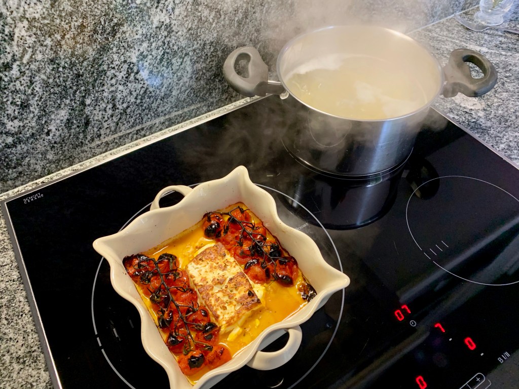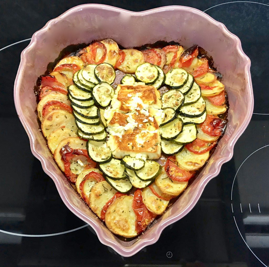Tästä tuli nyt yhdistelmä Luca Pappagallon ”Verdure al Forno’a” ja kreikkalaista ”Feta Psiti’tä”.