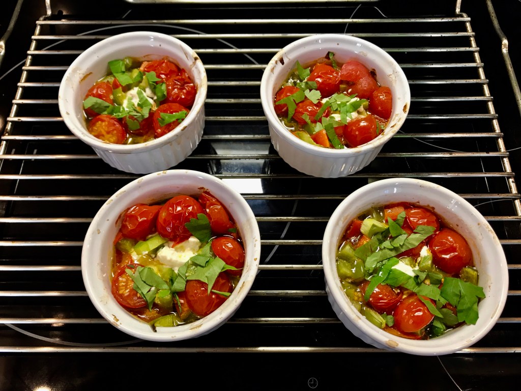 Valmistin osana tällaista päivällistä pieniä yhden hengen ”ruukkuja” perinteisestä kreikkalaisten Feta Psiti -paistoksesta.