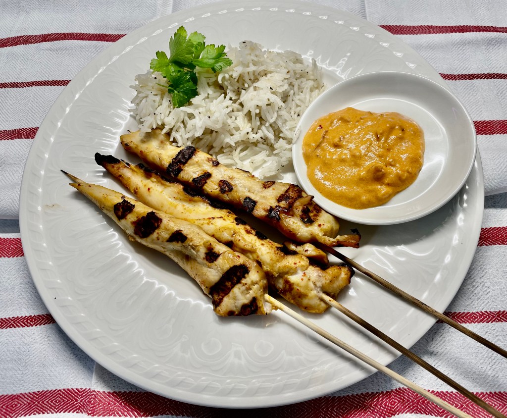 Tuli taas todistettua, että ”paras on hyvän pahin vihollinen”. Minulla on ollut allaoleva hyväksi havaittu resepti jo vuosikausia, mutta silmäni osuivat netissä englanninkieliseen blogiin, missä hehkutettiin aidon satay-kastikkeen ylivertaisuutta. Siinä todettiin, että useimmat tekevät satay-vartaiden kastikkeen maapähkinävoista, kun se pitäisi tehdä maapähkinöistä, joista valmistettuna lopputulos on aivan toista luokkaa. En ollut koskaan tehnyt sen paremmin maapähkinävoista kuin maapähkinöistäkään, sillä omassa reseptissäni käytetään ”vääräoppisesti” mantelijauhetta, mutta pitihän minun yrittää valmistaa tämä aito kastike, jonka ainekset muutenkin poikkesivat aika paljon tutun kastikkeeni aineksista. Yleensä saan tällaisen päähänpiston tehdä jostain hyvästä vielä parempaa silloin, kun vieraita on tulossa. Onneksi tällä kertaa ei tullut vieraita. En tiedä, missä oli vika – noudatin erittäin tarkasti uutta ohjetta ja onnistuin vielä löytämään reseptissä tarvittavaa Tamarind-tahnaakin, mutta lopputulos joutui roskiin.