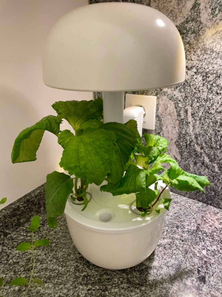 Opin tuntemaan shiso-yrtin tai -lehdet runsas 12 vuotta sitten, kun kävin opettelemassa japanilaista keittotaitoa japanilaisen ystävän luona. Samoihin aikoihin maistoin eräässä Pariisin japanilaisravintolassa shiso-lehdillä maustettuja susheja. Tämän yrtin poikkeavan pikantti maku ihastutti sitäkin enemmän, kun shiso-lehtiä oli silloin erittäin vaikea löytää myynnistä. Jostain aasialaismyymälästä niitä löytyi siististi lehti lehden päälle pinottuna 20 lehden pakkauksessa. Hinta oli harvinaisuuden mukainen. Tilasin siihen aikaan netistä shison siemeniäkin ja kylvin kukkaruukkuun, mutta siemenet eivät edes itäneet, sadosta puhumattakaan. Tätä taustaa vasten ymmärtänet haltioituneen ihastukseni palattuani Ranskaan Suomessa vietetyn kahden viikon joululoman jälkeen ja löydettyäni ”Plantui-yrttitarhani” tällaisessa tilassa.