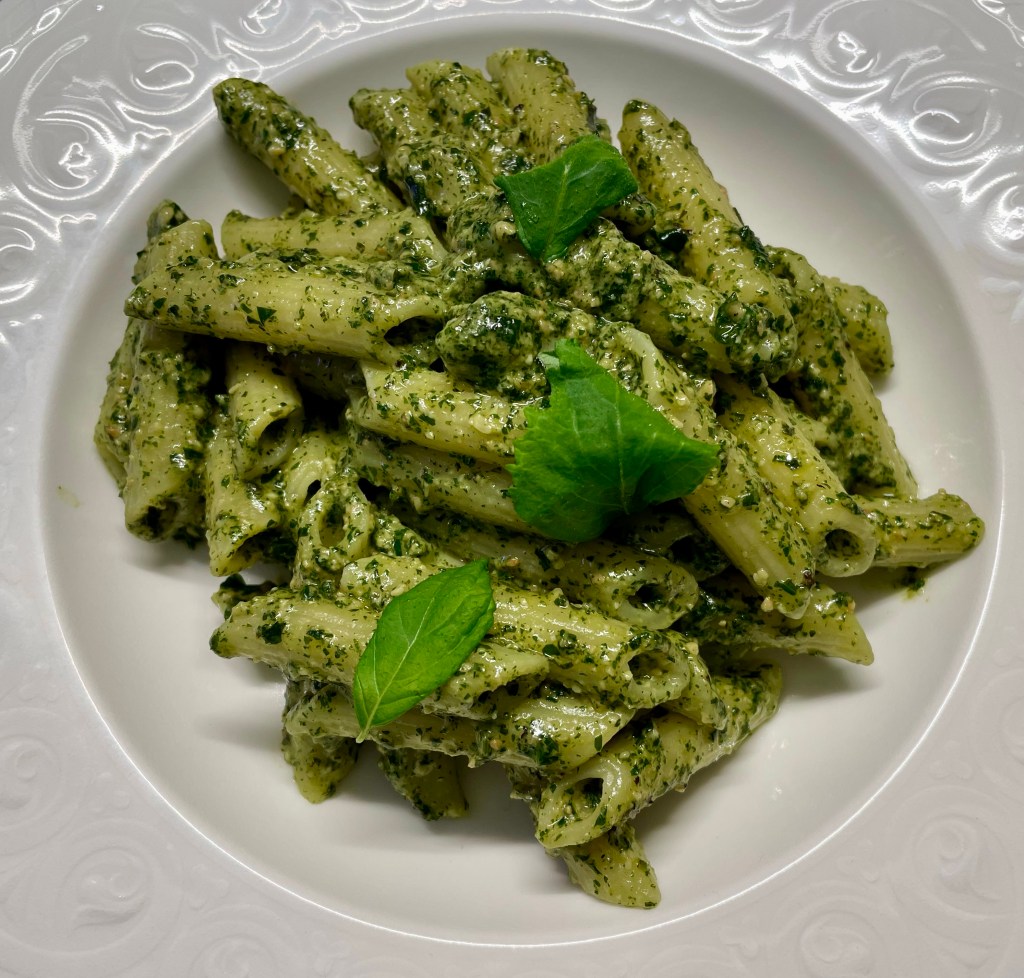 Siispä ryhdyin etsimään netistä reseptejä hakusanalla Shiso. Löysin Chef Simon’in sivustoilta – jotka olen jo aikaisemmin hyviksi todennut – ohjeen shiso-pestosta, joka tarjoillaan penne-pastan kera.