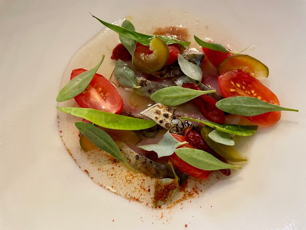 Aistittavasti erittäin tuoreita, lähialueen aineksia oli yhdistelty annoksissa niin, että tuloksena oli uudenlaisia ja yllätyksellisiä makuelämyksiä. Chef mainitseekin ravintolan sivuilla kokevansa keittiönsä laboratoriona, jossa on mahdollista ilmaista itseään vapaasti.