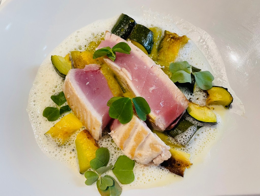Nettisivujensa mukaan ravintolan nimi, Zoko Moko tarkoittaa baski-kielellä rauhallista nurkkausta. Intiimi, rento, baski-alueen keittiöön keskittyvä ja Michelin-oppaassa maininnan saava ravintola tarjoaa viiden ruokalajin illallisen 50 euroon. Me tyydyimme 39 euroa maksavaan kolmen ruokalajin vaihtoehtoon. Kun viinitkin olivat edullisia, tuli koko kahden hengen illallinen maksamaan vain hiukan yli 100 euroa. Raaka-aineet olivat tuoreita ja laadukkaita. Pääruokana tarjoiltu valkotonnikala (kuvassa) jäi mieleen yhtenä herkullisimmista nauttimistamme tonnikala-annoksista!