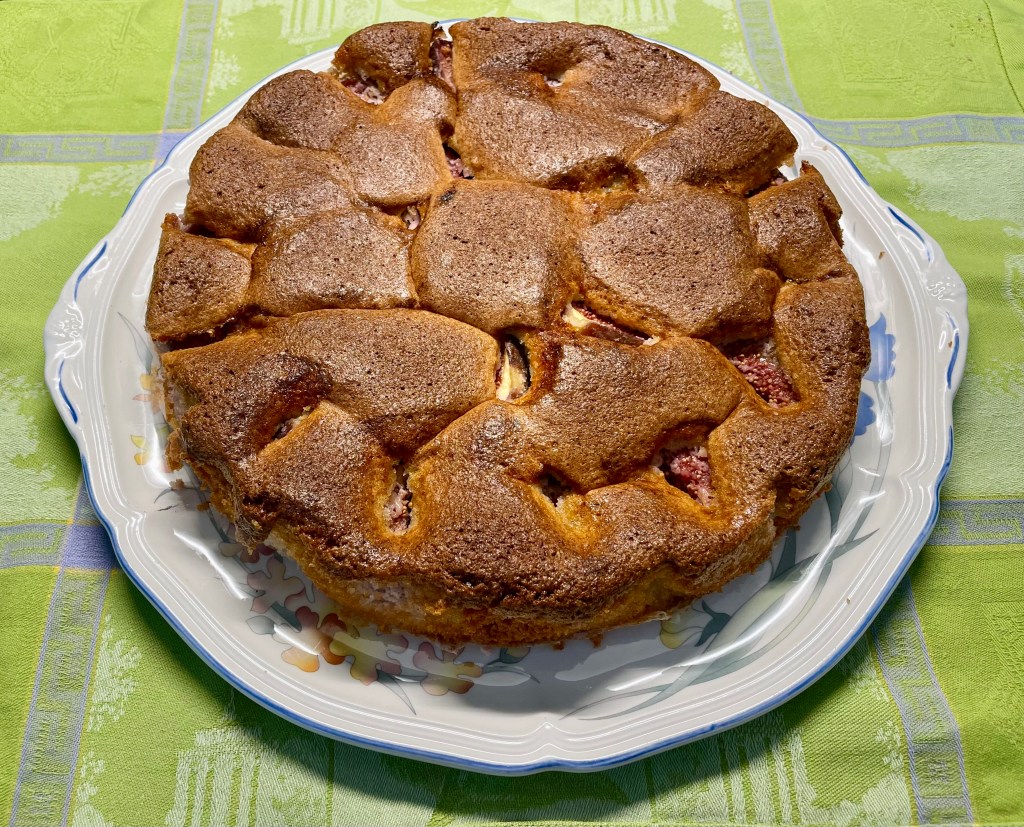 Alkuperäisessä ohjeessa viikunanpuolikkaiden koko leikkauspinta on näkyvissä, minulla viikunanpuolikkaat painuivat lähes kokonaan taikinan sisään. Ehkä pitäisi yrittää asetella ne varovaisemmin taikinan pintaan…Näkö ei kuitenkaan makua haitannut!